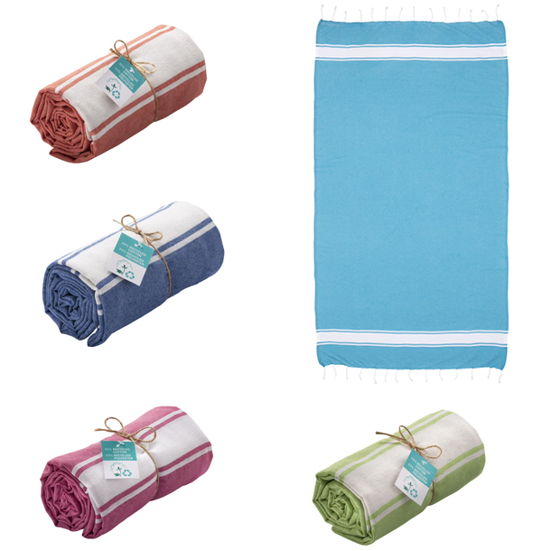 κωδικός 6554 Πετσέτα παραλίας ή χαμάμ από ανακυκλωμένα υφάσματα(140 g/m²) Διαστάσεις πετσέτας: 75X150 εκ